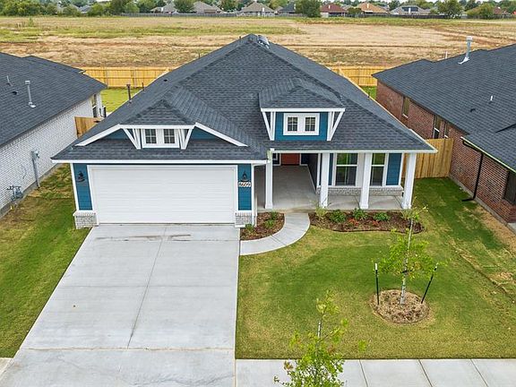 *Reduced over $27,000* This home is ideal for those seeking a private and peaceful living environment. The kitchen is strategically positioned to the side, blocking noise from the living room while maintaining an open feel. The kitchen seamlessly connects to a spacious dining room with abundant natural light. Enjoy luxurious features like quartz countertops and a gas range in the kitchen. Throughout the main areas, elegant luxury vinyl plank flooring adds a touch of sophistication. Escape to the spacious primary bedroom with a beautifully tiled shower in the primary bath. The extended garage provides ample storage. The craftsman exterior of this home brings charming curb appeal that will draw admiration from all passersby. Abbot Lake is a beautiful new community with convenient access to I 240 and Tinker Air Force Base in the Moore school district will wow you with its secluded location and two ponds. Future amenities in this neighborhood include a fishing dock, playground, and splash pad. Included features: * One-year home warranty * 10-year structural warranty * Guaranteed heating and cooling usage on most Ideal homes * Fully landscaped front & backyard * Fully fenced backyard. Floorplan may differ slightly from completed home.