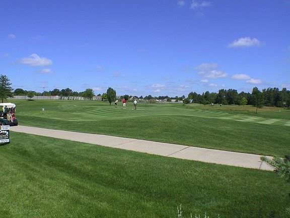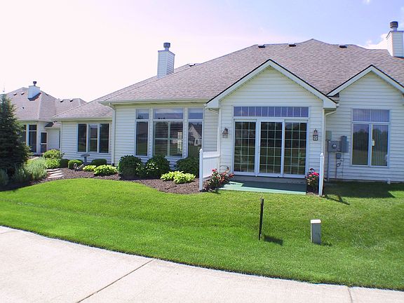 For more information on this property and others go to www.century21bradley.com. Spectacular View!! This beautiful villa is located on the 13th green in Cherry Hill! Gorgeous partially covered entry welcomes guests with flair. Ceramic tile foyer & the dining room adorned with custom window treatments, chandler & 9ft ceilings lead into the living room which touts a spectacular view, 10ft ceilings & fire place. Beautiful laminate floor, breakfast bar and hardwood cabinets adorn the bright kitchen. Stunning beveled glass double pocket French doors lead to a cheery family room. Master bedroom overlooks the golf course and offers plantation blinds, jetted tub, ceramic tile floor & large walk-in closet. Amenities include water softener, April air & security system. Association dues include, but not limited to, snow removal & yard maintenance. Immaculate home!