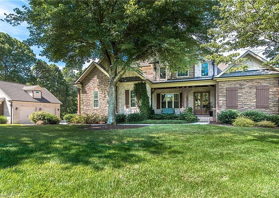 This custom home builders' personal residence is now available in the heart of Oak Ridge and Northwest schools. This fantastic floorplan features the primary bedroom on main level, formal dining and two indoor fireplaces, wide plank wood floors, fresh paint and ample sunlight! Open concept kitchen with custom vent hood and farmhouse sink. The covered back porch has access to the back patio and outdoor fireplace, tree house and outdoor shower In addition to the interior features, this home features a second detached garage with 582 sq ft of office space (not included in heated) Heron's Nest neighborhood has dedicated walking trails and conservatory and is also located less than a mile from Oak Ridge Town Park, which features bark park, ball fields and endless trails. This home has easy access to hwy 150 and hwy 68 and less than 15 minutes to PTI airport!
