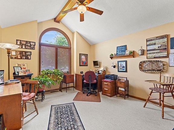 You are sure to be delighted with over 2000 sq ft split bedroom ranch on a full finished basement. Upstairs living space has unique vaulted ceiling, exposed wooden beam, Brazilian cherry hardwood floors, gas stone fireplace, access to the pergola covered deck, and large windows. Adjacent to the living room is the eat in kitchen, stainless steel appliances, spacious gathering area, granite counters, and ample counter space. Primary bedroom is generously sized with walk-in closet, direct access to the deck, & spacious ensuite with separate tub and shower. Lower level has large recreational area, two rooms perfect for a home office or workout area, spectacular living space with gas stone fireplace, third full bathroom with tub/shower combination and large storage area. The backyard overlooks the common area, neighborhood playground and walking path that connects to the PufferBelly Trail. Other highlights and items that stay include HVAC in 2021, security system, all appliances including washer and dryer, sprinkler system, pool and foosball tables, 2 sump pumps with battery back-up, newer carpet, gas line for a built in gas grill, TV in main level living space, and storage in the oversized garage.