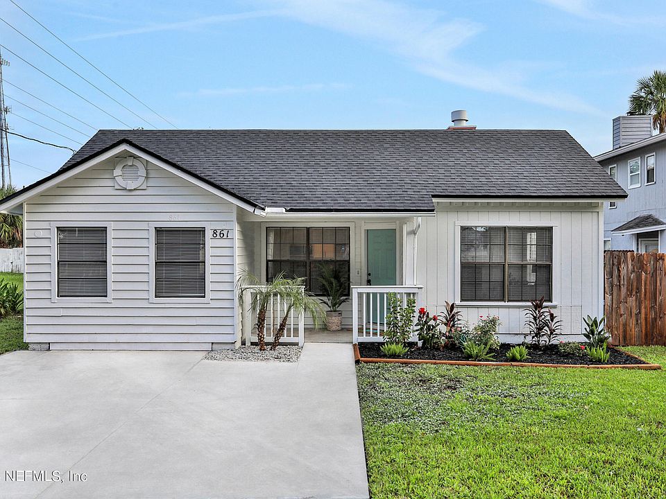 PRICED TO SELL!!! COME TAKE A LOOK EIGHT BLOCKS TO THE BEACH! Come by and see this beautifully remodeled FOUR-bedroom home, located in South Jacksonville Beach. You can ride your bike, golf cart or take a short ride to the OCEAN. Close to the beach, the hospital, shopping, restaurants, schools and parks. It feels like a BRAND NEW house and is just waiting for you to make it into your very own BEACH BUNGALOW. The spacious master suite boasts ample space for a king-size bed, accompanied by a generous walk-in closet perfect for storing your treasures. Step outside and discover your own private oasis, complete with a fenced-in backyard and covered patio. Perfect for sipping morning coffee, hosting gatherings, or simply enjoying the warm breeze and sounds of the ocean. This move in ready home is one that you don't want to miss! NEW WINDOWS AND SLIDER TO BE INSTALLED!