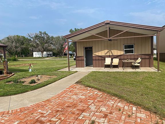 Nice little cabin that is handicap accessible. Low maintenance. Laminate floors. Beautiful yard. Huge shop/garage with a storm shelter inside. Nice sidewalks and patio.