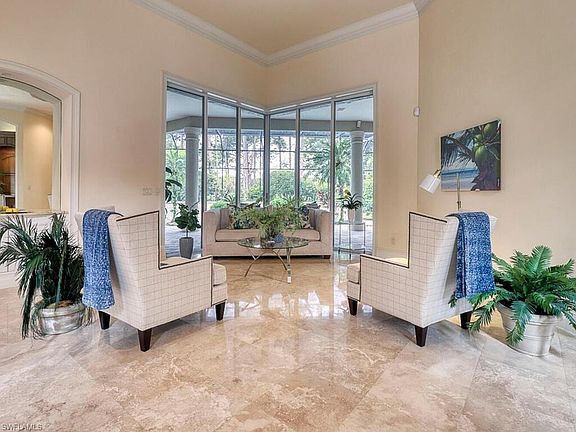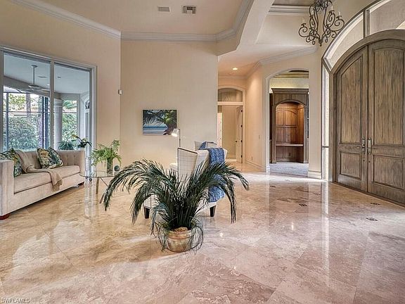 Custom built elegant and spacious estate home situated on oversized homesite with meticulously maintained lush tropical gardens overlooking panoramic views of the 5th fairway of the Arthur Hills designed golf course. The home's two story design features a welcoming stage for family and guests with an open floor plan, architecturally accented ceilings, crown moldings, private bonus room with guest bedroom which accesses an outside balcony offering spectacular lake and golf course views. Disappearing sliding glass doors off the living and family room invites the outdoors in. The expansive lanai adds on dimension to the homes elegant design. This area is fabulous for entertaining family and guests. The home features Gourmet kitchen, Butlers Pantry, living, dining, and family room, upstairs bonus room, 3 bedrooms, 4 full bathrooms, air conditioned three car garage, with 4170 square feet under air. Collier's Reserve is the world's first Audubon Signature Sanctuary Golf Course. Recent renovations to the Club include the Boathouse overlooking the Cocohatchee River, a new wellness sports center, pet park, tennis, pickle ball and bocce courts.