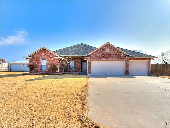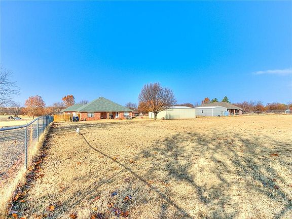 Location, location, location. Newer flooring in the spacious living with gas log corner fireplace. Kitchen with eat-in area opens to the living area with a breakfast bar and island with new flooring. Built-in appliances. Master has new carpet, and updated shower, double sinks with Quartz counters & new tile flooring. Large walk-in closet and barn door from ensuite to Master. 2nd bath updated with new floor, tile & quartz. 30x40 red iron shop with electric has it's own meter. A mother in law Cabin added about 450 sq ft. Desirable neighborhood in Bridge Creeks schools is located close to major highways for easy commuting to TAFB, Will Rogers World Airport, FAA, Norman, OU, Moore, Mustang, Yukon, Oklahoma City & Bricktown.