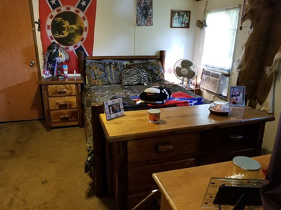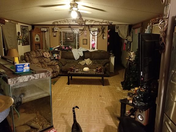 This home is a 3 bedroom 2 full bath Mobil home. Has full bathroom in master bath and also has walk in closet in master. Beautiful home with tree covering front porch. Home needs some TLC but is still in great shape. Has a barn that will stay and stove will stay. Furnace new and installed in 2014. Hot water heater was installed in 2012. Had new paint in kitchen, front room, master bath and laundry room.