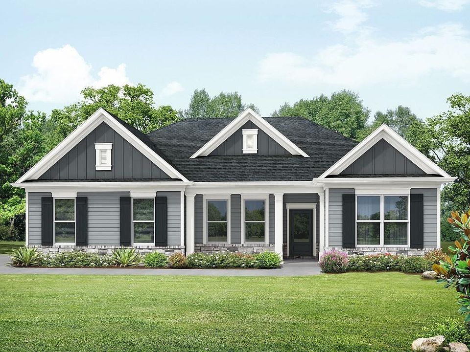 The Rosewood Plan built by My Home Communities. This Craftsman Farmhouse Beauty is a desirable one level living with its extensive foyer flanked with 2 halls for privacy, driftwood LVP planks leading to, 2 spacious secondary bedrooms with large farmhouse style windows and doors, separated by a full bath with granite countertops. Large In law or teen suite with full bath nestled away on the opposite side of the foyer for comfort. This intuitively designed Kitchen with its White cabinets, walk in pantry, pendant lights, 8.9 ft island with Luna Peral granite countertops is a culinary dream. The adjacent dining area adorned with modern lighting is sure to seat 6 plus with a view to the large family rooms stack stone fireplace creating an inviting ambiance for family and friends to fellowship. Large windows introduce natural light in from the generous covered patio that is perfect for outdoor gatherings and its view of nature. Retreat to the owner's hall tucked in the back of the home with its oversized primary suite with double trey-ceilings and a huge walk-in closet. The primary bath has a spa like tiled super shower with granite dual sinks. Side entry garage hall has a mud bench for drop off and a coat closet. This well thought out home sits on 3+ acres large enough for a pool. NO HOA. Close Early 2024. $10,000 with preferred lenders *Matterport tour is not of the actual property but is an example of the floor plan* USDA eligible. *Secondary photos are file photos*