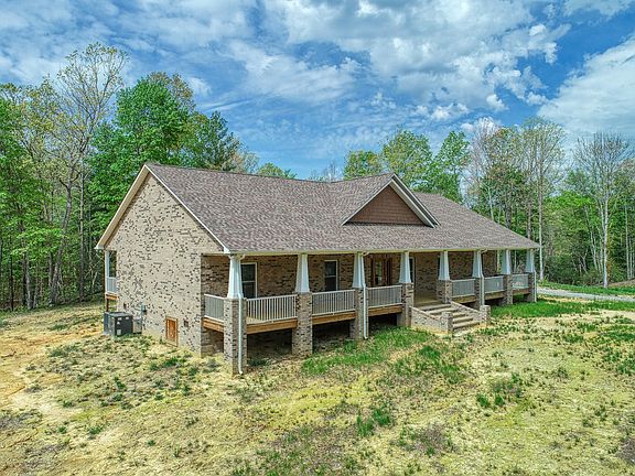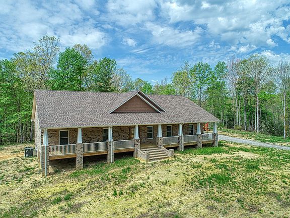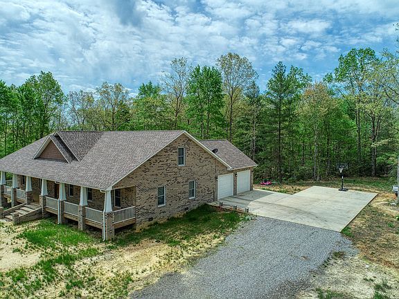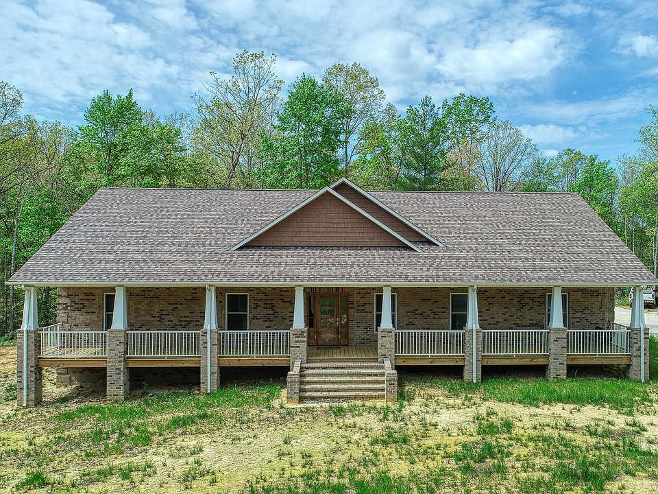 Twenty-Five acres of beautiful rolling wooded property gives you all the privacy you need along with an all brick custom designed country style ranch home. Built by Logan Stonecipher in 2017, this home features a large covered front and back porch just waiting for a swing or rocking chair so you can enjoy the quiet sounds of nature. The interior offers an open concept with a split bedroom floor plan. No carpet in this home! Floors are gorgeous lightly grooved hardwood and the laundry and both bathrooms are tiled. The kitchen features maple cabinetry with soft close drawers, stainless kitchen-aide appliances and the center piece is the large granite island perfect for entertaining. Last but not least is the side entry two car garage with pull-down stairs for overhead storage.