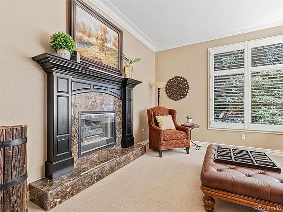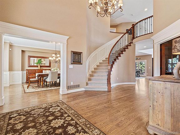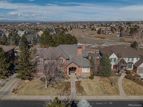 Sited on a .42 acre lot backing to beautiful Highlands Ranch open space this Highwoods home offers all the features you have been searching for. The classic red brick exterior, rare four-car garage, and cul-de-sac location welcome you into this gorgeous turnkey home. Soaring ceilings, custom millwork, gleaming hardwood floors, and classic plantation shutters are timeless elements of this traditional home. A dramatic two-story foyer with a graceful curved staircase creates the perfect entry and sets the scene for elevated living. Just off the foyer a sunny formal living room and a handsome main-floor office share a striking dual-sided fireplace. The formal dining room is accented by wainscotting and a spacious butler's pantry that perfectly integrates the dining and kitchen spaces while creating a wonderful hub for entertaining. The stunningly remodeled kitchen features high-end appliances, sophisticated two-toned cabinetry, and a huge island with a convenient prep sink. An open and inspiring great room with a gorgeous fireplace, floor-to-ceiling windows, and an open space view make this house a home. Just off the kitchen is an impressive two-story deck with built-in grill and plenty of space for dining al fresco. Upstairs you will find an ideal layout with four bedrooms and 3 bathrooms including the vaulted primary suite with a private deck overlooking the lovely open space view. The expansive walkout basement offers room for everyone to spread out including a dedicated gym, 5th bedroom, bonus flex room, and huge living area. Entertain in style in this decked-out space with a huge wet bar, media room, cozy fireplace area, and walkout access to the spacious backyard, flagstone patio, and water feature. It is easy to imagine all the ways to enjoy this dreamy, private backyard and with friends and family. The Highwoods is a prestigious gated neighborhood boasting a community pool, tennis courts, easy trail access, and incredible Colorado mountain views.