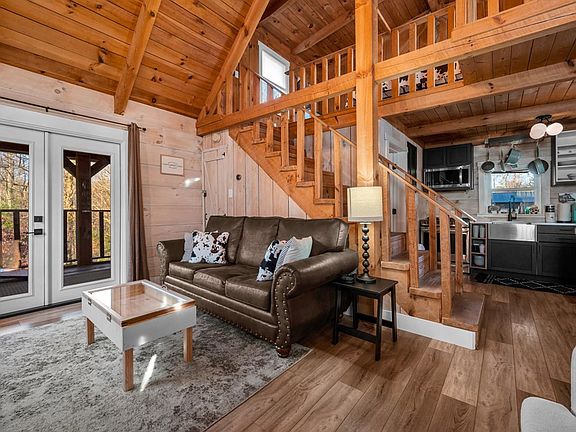 Welcome to your cozy mountain getaway in the peaceful side of the smokies! This two bedroom cabin has been fully updated and has been a very popular short term rental this year. This cabin is truly unique as it has the charm of real wood logs, mixed with todays popular modern farmhouse style. On the main level there is a living room with beautiful vaulted ceilings, a full bathroom, and an open and bright kitchen. You can also access the wrap around porch from the living room. The wrap around porch is also screened in on the rear of the cabin, perfect for relaxing or enjoying a game of corn hole. Upstairs in the loft is bedroom one which has a king bed and plenty of space to spread out. Downstairs is bedroom two which has a queen bed, a large walk in closet for extra storage space, a full bathroom, and an open rec room area which currently has a custom barrel multi-cade system with over 400 games. Walk outside the basement to the covered patio with a beautiful aspen spa. There is also a large fire pit area perfect for a night with s'mores! For the investor one of the big perks of this property is that it is setup with full camper hookups (water, sewer, and a 50 amp electric plug in) which is a perfect additional revenue stream that has yet to be tapped into by the current owner. It also has a brand new metal RV building to protect your RV investment for years to come. Between the revenue of the cabin which was around $65k this year and the potential revenue of the RV spot this is a great investment property for the price. RV rentals in the area go for around $100/night on average so there is potential to add an extra $15k-$30k a year in revenue. The two story storage shed next to the camper also has electric and could be finished out as an additional game area or whatever creative idea you may have! This property is turn key and just a short drive to tuckaleechee caverns and all of Townsends best attractions!