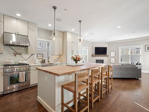 Welcome to your dream home! Located in the sought-after City Point area on South Boston's East side, this property offers luxurious amenities & modern conveniences. Step into the 1,661 sq ft of well designed living space & discover a chef's kitchen featuring custom cabinetry, marble counters & professional-grade appliances. The centerpiece is a butcher block island perfect for casual entertaining. Adjacent is the sunny living room with a gas fireplace. A dining nook is ideal for intimate meals. Directly outside is your private paver parking space, wired for EV charging, that also doubles as a private patio. The primary suite boasts double closets & a gorgeous ensuite bathroom. A spacious guest bedroom has an adjacent full bathroom. The lower level offers versatility. It currently functions as a media room and a home gym with sauna, but easily converts to a guest room & additional living room. This property epitomizes refined living with its blend of beauty, functionality, and comfort.