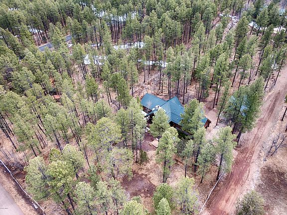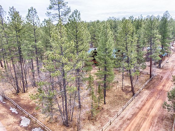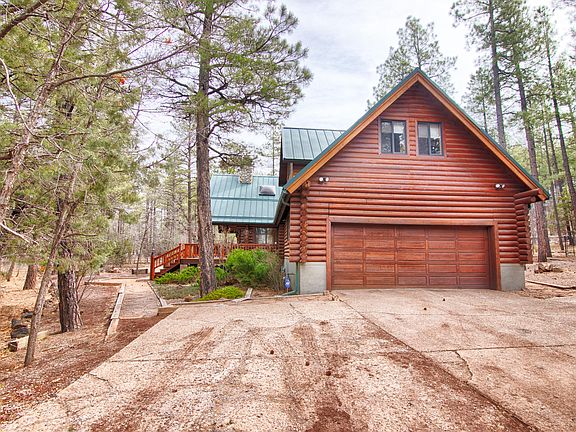 Extremely private log cabin with a separate guest house! Totally surrounded by towering Ponderosa Pines. Master downstairs! Inside you will find soaring vaulted ceilings, floor to ceiling native rock fireplace and antler chandelier. Large center island and breakfast bar that is open to the living area. In the 1200+Sf guest house guests enjoy a full kitchen, dining area, living area and two spacious bedrooms upstairs. Incredible properties like this don't come along very often, so don't wait!