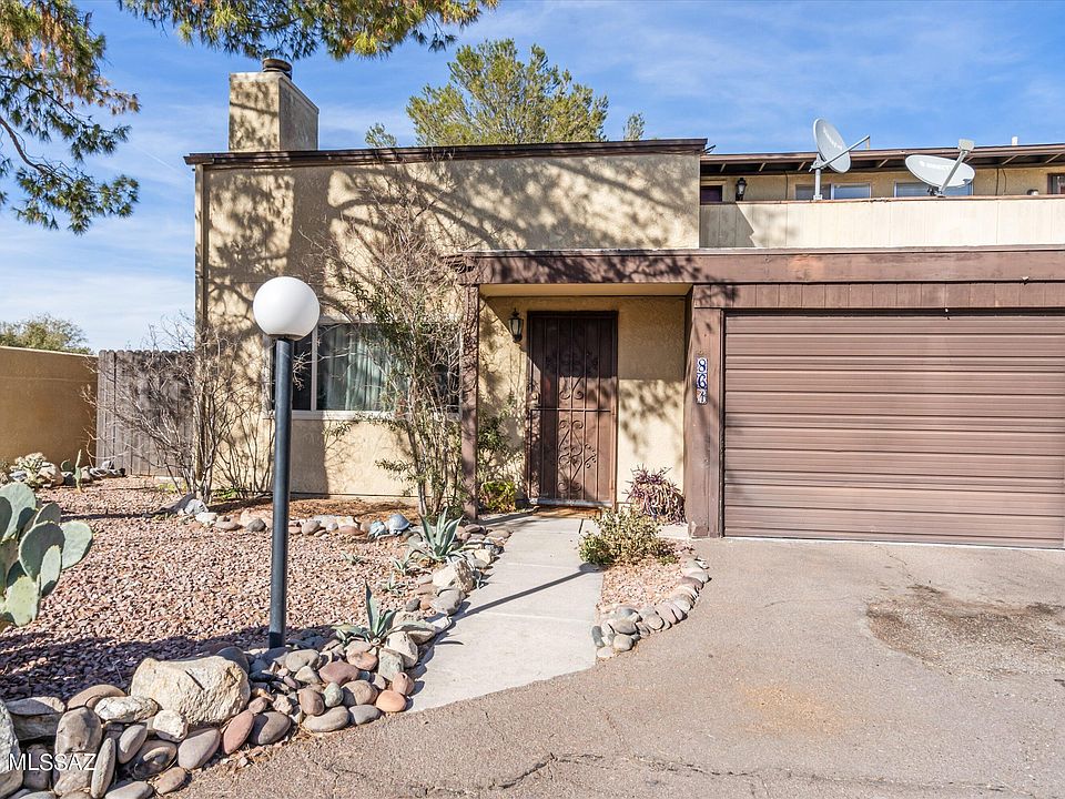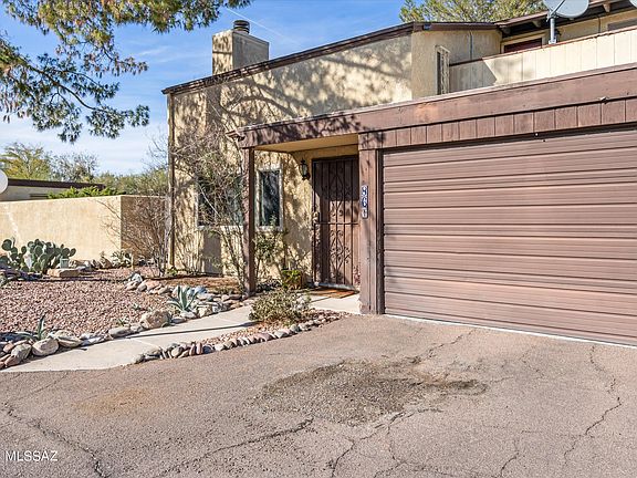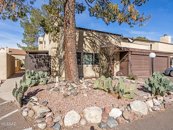 Beautifully updated two-story townhouse with southwestern charm tucked away in a quiet area, yet central to everything we love about Tucson. Just blocks from the serene UA Campus Farm, near shopping at River/Campbell, and minutes from La Encantada, ideal for a UA-connected, Banner-UMC access as well. Your new home is adjacent to the community pool and extra parking. Downstairs has a propane gas fireplace, open concept living area, bonus back office room, and half-bath, while upstairs features two bedrooms with front balcony. Natural light abounds, HVAC recently updated, newer carpet, and upstairs bathroom redone. HOA covers pool, parking, water, sewer, trash, exterior, roof and roads. This is an ideal location in a great smaller community with just the right size. Rentals allowed.