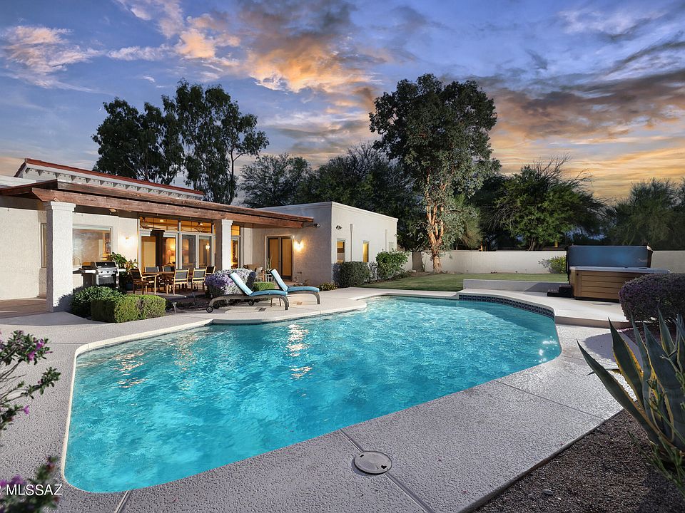 Custom home at end of a quiet cul-de-sac with gorgeous Catalina Mountain views. Located in Shadow Hills and Catalina Foothills School District. Inside you will be dazzled by the wood floors throughout, soaring ceilings, wood cased Pella windows and doors, granite counter tops, and rich wood cabinets. The kitchen features stainless steel wolf and sub-zero appliances, built-in steamer, warming drawer, large island, under cabinet lighting, custom tile backsplash. The master suite features private patio access to pool, luxurious master bath with bidet, walk-in shower, accented with travertine tile. Spacious office with expanse of custom built-ins. The yard features a large covered patio, lush lawn, mature landscaping, and a sparkling pool and portable spa. This home is a private sanctuary.