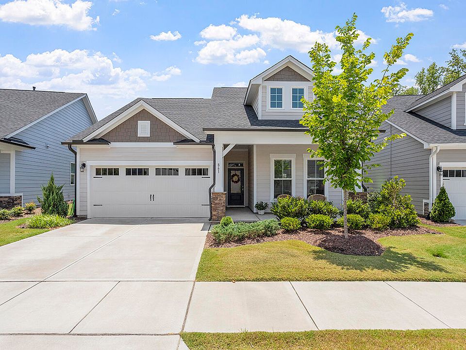 Experience comfort and tranquility at 861 Flower Manor Drive, a beautifully maintained home in the sought-after 55+ active adult portion of Wendell Falls. This inviting ranch offers a unique blend of elegance and relaxation, featuring a private patio with serene pond and wood views. Enjoy the convenience of one-level living in the main floor primary suite, complete with a spa-like walk-in shower and a custom California closet. The gourmet kitchen features quartz countertops, a center island, and top-of-the-line appliances. The spacious open floor plan with high ceilings ensures a bright and airy ambiance throughout the home. A dedicated study provides a quiet retreat, while two additional bedrooms and bathrooms on the main floor enhance comfort and convenience. The upstairs bonus room loft, featuring a bedroom and full bathroom, adds versatile living space. Relax on the screened patio or open patio, both offering a private feel, a true rarity in this type of community. Living in Wendell Falls means embracing an active and fulfilling lifestyle. Enjoy a wealth of amenities, including a clubhouse, pool, gym, walking trails, pickleball and tennis courts, and more. Engage in a variety of community events designed to foster new friendships and a strong sense of community. Plus, with HOA dues covering lawn maintenance, you can enjoy a low-maintenance lifestyle, freeing up more time for the activities you love. Don't miss out on the chance to make this exceptional home yours. Ask about our local lender partner's closing cost offer and start your new chapter at 861 Flower Manor Drive today!