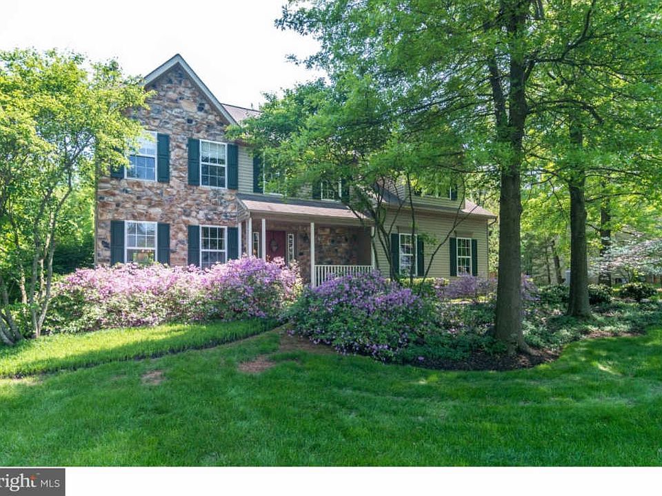 Welcome home to this beautiful and meticulously maintained home located in the highly sought after neighborhood of Charter Oaks. Situated on a private oasis on a half acre lot, you will admire the perennial gardens, which are beautifully landscaped with lush plantings and a manicured yard with extensive hardscaping and a lovely patio for outdoor entertaining, a perfect Summer retreat to enjoy. This home is conveniently located in Upper Gwynedd Township and just minutes to Merck, and downtown Lansdale Borough with the Septa Regional Rail Line train station for easy commuting to downtown Philadelphia. As you approach the property you will admire the curb appeal featuring a lovely stone exterior and a covered front porch, a quiet place to sit and relax at the end of a long day. Pride of ownership is evident as you step inside the two story foyer with turned stair case and hardwood flooring running seamlessly throughout the first floor, also a new hardwood stair case and hardwood second floor hallway. Inside features a bright open floor plan, and has a freshly painted neutral color palate throughout, A formal living room and dining room are spacious and open to each other featuring crown moldings throughout and offering plenty of entertaining space for family and friends. Adjacent to the foyer is a powder room and a large coat closet. The kitchen is the heart of the home and you will be happy to spend time preparing meals in here featuring white cabinetry accented with crown moldings, granite counters, a center island, and a spacious breakfast area which opens into a sun drenched morning room featuring ceramic tile flooring, a cathedral ceiling with skylights and lots of windows offering beautiful views and access out to the back yard. Overlooking the kitchen is the bright and airy family room with crown molding accent, a wood burning fireplace to take off the Winter chill, and an abundance of windows to let the natural light spill in. Upstairs your private master retreat awaits you and is a welcoming place to relax and unwind featuring a vaulted ceiling and ceiling fan, a cozy sitting room, two large closets and a well appointed master bathroom which offers a whirlpool tub, double vanity and large walk in shower. Three additional spacious bedrooms all have large closets and share the hall bathroom. The unfinished basement offers endless possibilities for future recreation or entertaining space and offers tons of storage. The two car garage also features openers and an extra place to store your gardenin