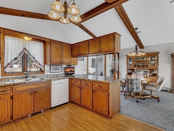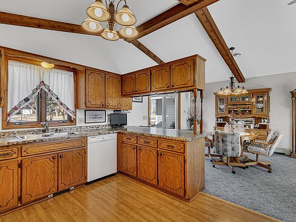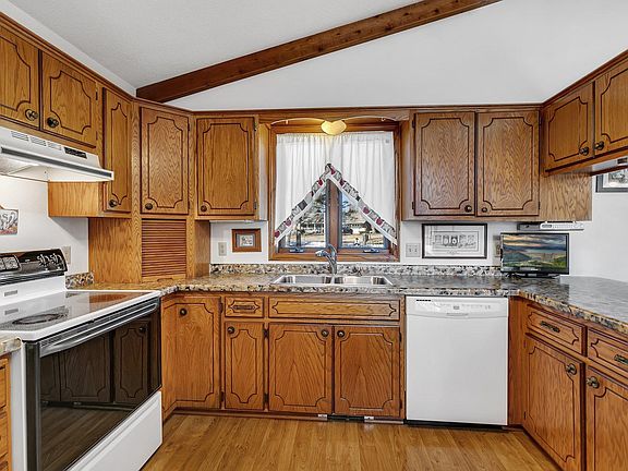 One level living opportunity, offering 1334 finished sq. ft. with 2 bedrooms, 2 bathrooms, ample closet space, vaulted ceilings, new roof/2024, newer boiler, fenced yard with gazebo and a 22x30 bonus shed with cement and electric. Close to city park & public pool.