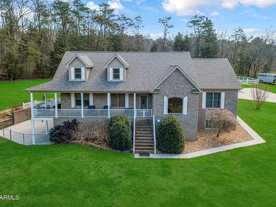 ENJOY THE PEACE AND SERENITY OF COUNTRY LIVING! Escape from the city to this 13+ acre farm and beautiful home, which is a decorator's delight. Completely remodeled throughout the 4 bedrooms and 4 baths, living room with vaulted ceilings, skylights & fireplace, open kitchen with quartz countertops & Jenn Aire appliances, formal dining room with spectacular picture window view, Split bedrooms with Jack and Jill bath, master bedroom with huge walkin closet, master bath with soaking tub and large tiled shower, upper-level bonus room, office & bath, lower-level rec-room, bedroom, bath with tiled shower, workout room, storage. Main & lower-level laundry rooms. wrap around porches & patio, deep 2 car garage plus 24X48 heated workshop-garage, 48X62 3 stall barn & tac room, fenced pastures & creek