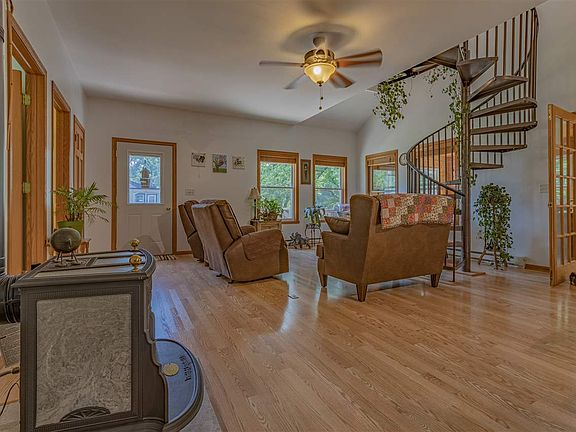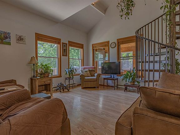 WOW! 105' River Frontage! Sharp 1300+ SF, custom built 16 yr old home is "high & dry" w/breathtaking views from every window is a nature lovers paradise. Peaceful, tranquil, scenic country setting all seasons of the year. Desirable great rm, open concept. Super kit w/42" cabinets, dining area open to great room. French doors to inviting 3-season rm w/walls windows & southern esp so easily heated most months. 2 bdrms main level. MBR w/WIC. Loft is 3rd bdrm. Plus walk-in storage area. Recreational activities galore: kayaking, fishing, close to prairie path for hiking, bird watching, star gazing from oversized deck. All appls stay. 2 car carport, shed. Road has an easement. Seeing is Believing!