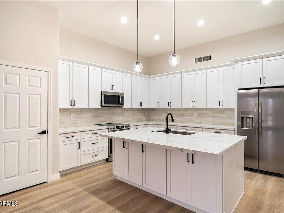 Outside, low-maintenance desert landscaping and a covered front patio make for enviable curb appeal. The backyard is an entertainer's dream with a covered patio, sparkling pool, and no backyard neighbors for enhanced privacyperfect for Arizona summers.