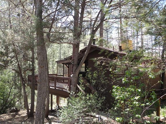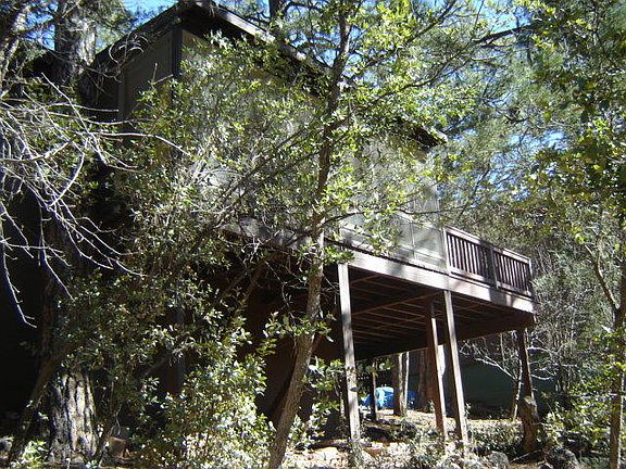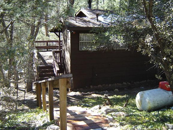 Charming Cabin; two bedroom, one bathroom; screened porch, great views. Close to Tonto Creek. Two off street parking spaces; new Trex deck with built in benches. New paint, new roof; washer and dryer in crawl space. New Hot Water Heater in 2006, New Screen porch in 2007, Apple tree and fruit tree in yard; furnished with the exception of patio furniture.