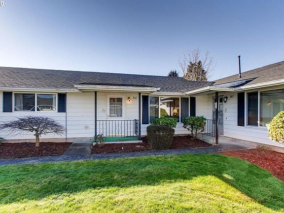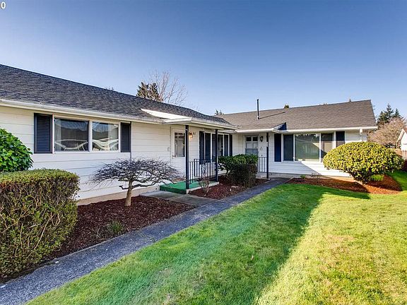 This cute home (WITH Air Conditioning!) in a 55+ community is clean as a whistle & move-in ready! Large living room is bright & sunny, & dining and kitchen have wood laminate flooring for easy care. Combo laundry/utility/pantry has lots of storage & a pull down ladder for attic storage too. Bath has tub/shower combo. Private patio has been redone & there are two dedicated parking spaces, one covered. Eagle Estates East has terrific clubhouse & pool too.