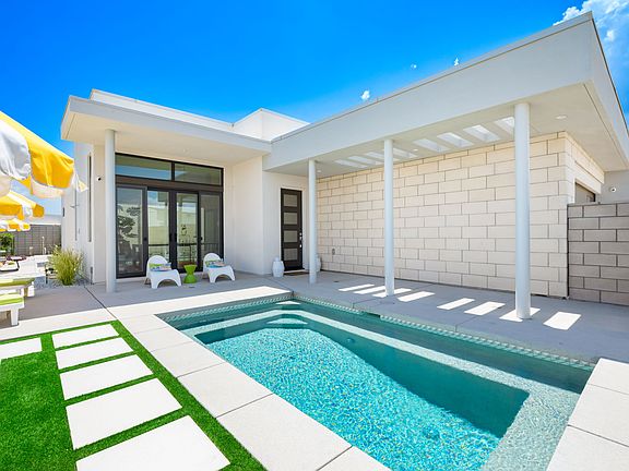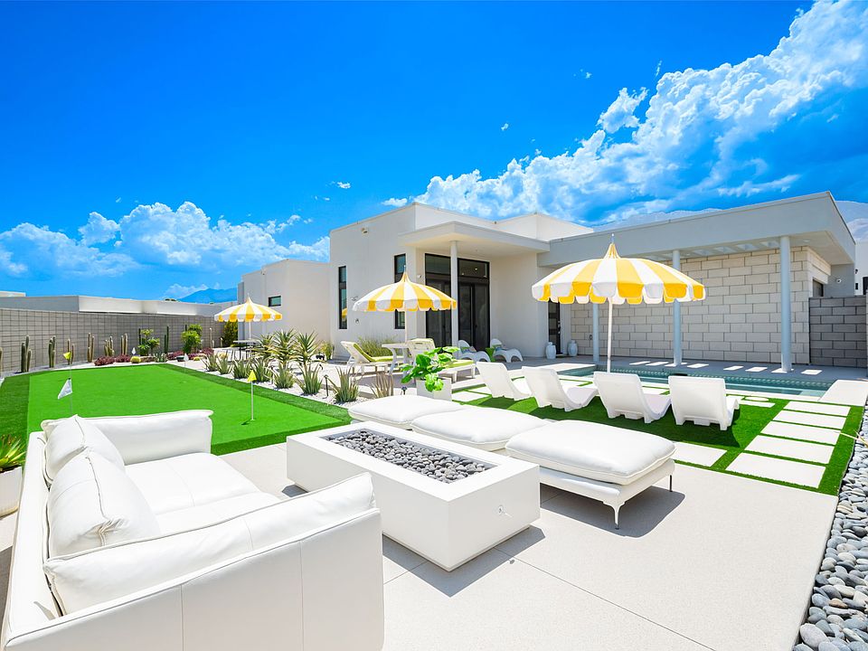 This modern, chic, and luxurious newly constructed home is located in the exclusive gated community of Miralon, offering resort-style amenities, and just minutes from Downtown Palm Springs. Enjoy the best of indoor-outdoor living featuring a front-loaded spool pool, perfect for soaking up the winter sun, putting green for mini golf or an additional area to enjoy, and multiple outdoor seating areas. The home features 3 ensuite bedrooms to enjoy your privacy, and a guest half-bathroom. Miralon offers a state-of-the-art clubhouse with two pools, a fitness center, a Wi-Fi cafe, a full-service bar, dog parks, a community garden, five lakes, and seven miles of walking trails. Offered for 28+ days only, and seasonal basis only. Please call for exact monthly rates and availability. All-inclusive seasonal rental. Available for 28+ days.