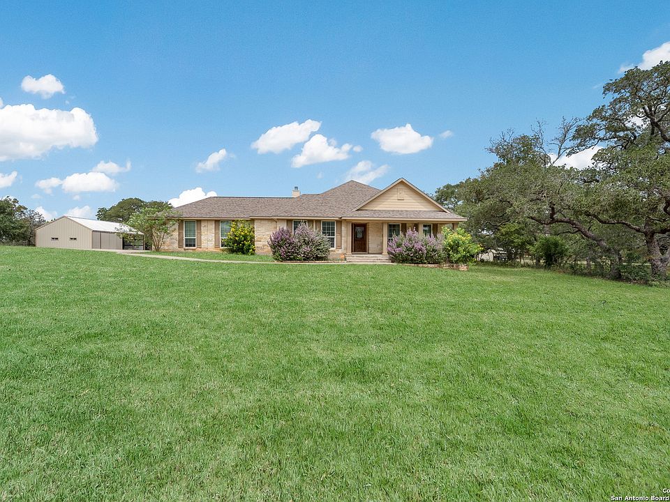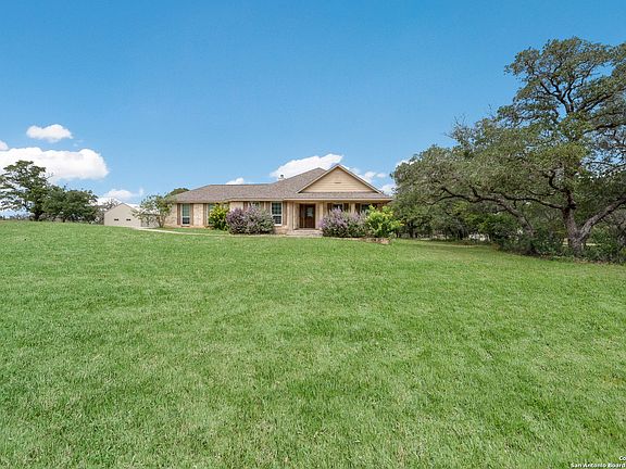 Welcome to 861 Paddy Rd - your peaceful country escape. Enjoy the best of both worlds, quiet country living just 30 minutes from downtown San Antonio. This charming 3-bedroom, 2-bath home sits on 5 fully fenced acres in a serene, no HOA neighborhood. Inside, you'll find a functional layout with an open living area, large bedrooms, dedicated office space, and cozy fireplace. The home is equipped with a 250-gallon buried propane tank for gas cooking, tankless water heater, and fireplace perfect for efficiency and comfort. Outside, mature trees provide shade and privacy, and the property boasts a large back deck and patio for entertaining or relaxing. There's no shortage of storage or workspace thanks to a spacious metal workshop/garage with 2-car carport plus a separate storage building. Additional highlights include a completely fenced property with gated entry, room for livestock, gardening, or future expansion, and an easy commute to San Antonio for work, shopping, and dining. This property is perfect for buyers seeking space, privacy, and versatility without sacrificing convenience.
