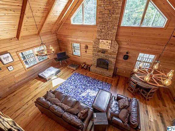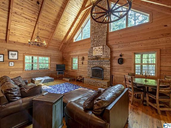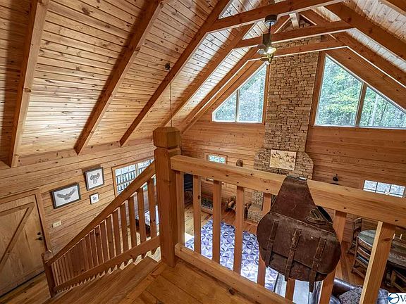 Beautiful, private setting on 6.17 acres! Own this upscale, rustic 3BR/2BA home featuring wood walls, wood ceilings, and floor-to-ceiling rock fireplace. Vaulted ceiling and open living lends an airy feel to this already spacious 1767 square foot floorplan! The upper level owner's suite includes a jetted tub and separate shower with dual heads & unique stone bench within! Built in 2006, this home comes complete with 2 central units, on demand water heater, and a full appliance package. Outdoor amenities include a covered wraparound porch, beautiful back deck with hot tub, privacy fence, and a detached 12x24 storage building with 2-6x8 lofts and 12' workbench. All this can be yours! $244,900