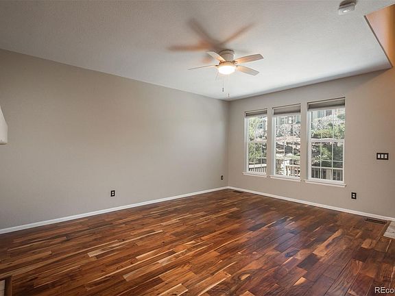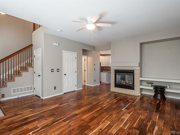 This townhome is move-in ready, featuring a large front porch ideal for enjoying beautiful Colorado evenings. As you step into this home you are greeted with beautiful laminate hardwood flooring throughout the main level and basement. A cozy living room with a two-sided gas fireplace adjoins the dining room and half bath. The kitchen is equipped with all kitchen appliances included, granite countertops, tile backsplash, and large pantry. Upstairs, 2 bedrooms and 2 baths, the spacious primary suite features a walk-in closet, a 5-piece bath with double sinks and a large soaker tub. There's also a secondary bedroom, full bath, and convenient upstairs laundry with washer and dryer included. The finished basement has an additional bonus room adding versatility, featuring laminate hardwood flooring. The two-car garage includes a level 2 electric vehicle outlet. Enjoy the convenience of nearby walking trails, parks, close to all shopping, dining, and easy access to I-25.
