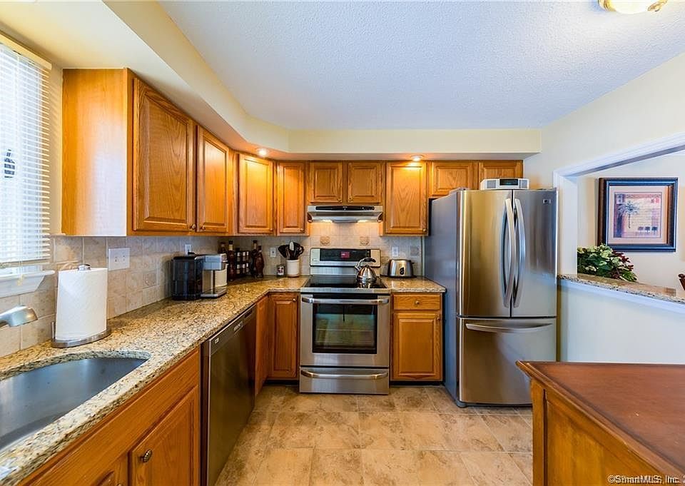 Renovated and Spacious 2 Bedroom, 1.5 Bath Condo in ideal Plantsville Location Close to Everything! Kitchen w/Granite and Stainless Appliances and Tile Flooring, Dining Area opens to Family Room and Sliders to Private Patio and Gorgeous Grounds and Powder Room and Coat Closet. Main Level Washer/Dryer w/Additional Organization. Upstairs boasts 2 Generous Bedrooms w/spacious closets and Full Renovated Bathroom, Large Linen Closet, Exterior Access - Full Unfinished Basement with Storage, Newer Tile, Carpet, Lighting, Trim, Shutters, 3 A/C Window Units, Walking distance to trails, restaurants, post office, and easy access to highways and shopping. Well maintained gardens with playground and benches and picnic table at one end of complex. Water included in rent! HURRY!