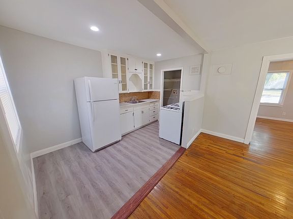 Welcome to this charming 1 bedroom 1 bathroom home! This house boasts a cozy and bright environment light walls and windows throughout. The floors have recently been redone throughout the house. Walking in the front door is the living room connected to a half wall open kitchen. The kitchen is furnished with a stove/oven and refrigerator. Washer and dryer hookups are housed in the laundry room right off the kitchen. The front yard is fully enclosed. Parking is available in the driveway in the back alley. This inviting home is eagerly awaiting its next tenants! ALL UTILITIES INCLUDED