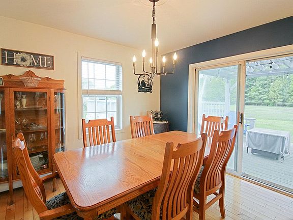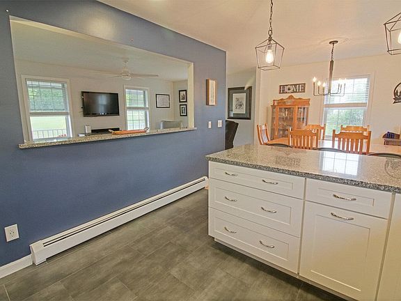 Discover the allure of this Georgia Colonial nestled on 2.77 sprawling country acres, featuring 3 bedrooms, 2.5 baths, a swimming pool, shed, 2-car garage, and more! The heart of the home, the recently remodeled kitchen, will captivate the chef with its granite counters, subway tile backsplash, tiled floor, under cabinet lighting, and stainless farmhouse sink. Adjoining the kitchen are the dining and living rooms with gleaming hardwood floors. Head through the dining room's sliding glass door onto the multi-level deck with a pergola and pool, creating an idyllic setting for summer relaxation and entertaining. Upstairs, retreat to the primary bedroom suite with a walk-in closet and access to a luxurious 3/4 bath featuring a tiled shower and stone floor. The finished basement adds extra living space with a family room, office area, laundry space, and half bath, along with stairs leading to the heated garage with loft storage. The property is equipped with an auto-generator and leased solar. Enjoy the covered front porch and the charm of perennial trees dotting the landscape. Nestled in a tranquil country setting yet just 10 minutes from the Georgia Market and I-89, this property offers the perfect blend of privacy and convenience.