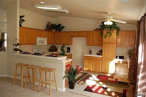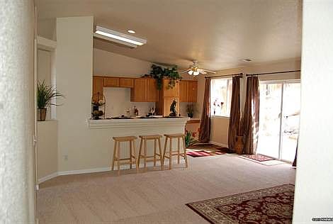 Single level Silver Crest home close to shopping with new carpet, new paint, new light fixtures. Great floor plan, Bright and Sunny, easy access....High ceilings in the family room and living room, also master bedroom............this is a regular sale not a short sale....... .vacant, lock box direct. Sellers are licensed Nevada agents. Curtains are not included in sale. Rods will remain.