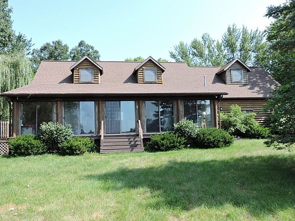 Beautiful waterfront log cabin on 300 acre Matteson Lake. 4 bedroom, 2 bathroom cabin has attached 2 car garage, 3 season porch, open concept kitchen, and a huge front porch for your rocking chair. 100 ft of private frontage at the end of a quite cul-de-sac. Matteson Lake is a 300+ acre all sport lake in south central lower Michigan.