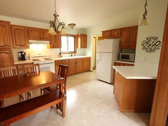 **PLEASE PROVIDE DETAILED INFORMATION with any inquiry by email to: peacockplaces@gmail.com. Inquiries without adequate information may not receive a reply. Please only inquire if you meet the suggested income guidelines, which is a steady, a gross monthly household income of $2800 per month or more. Include information on your household size, pets, reason for moving, length of time looking to rent, and and special concerns/questions. This is a like new, immaculate ready to move in 2 bedroom home. Vaulted ceiling and gas fireplace give it a modern cozy feel. Walk in closet at the front door. Kitchen has ample cabinet space with pantry cabinet and walk in pantry. Has gas range. Sink overlooks wooded area. Washer/dryer on main level along with two spacious bedrooms, each with a walk in closet. There is a small garage that will only fit compact cars. The basement is large, clean, dry, unfinished space that can be used for entertainment room, exercise equipment, storage, etc. would consider adding bedroom for the right long term tenants. The home is in a great neighborhood, adjacent to the middle school and 1 block to high school. Rent $950 per month. Security deposit $950. Tenant pays all utilities, and is responsible for lawn care and snow removal. Cable ready. Garbage pick up weekly is included. Pets would be considered on a case by case basis and would require $500 additional security deposit, depending on type and number. Please send email to inquire, including your information, and if available a copy of a basic rental application.