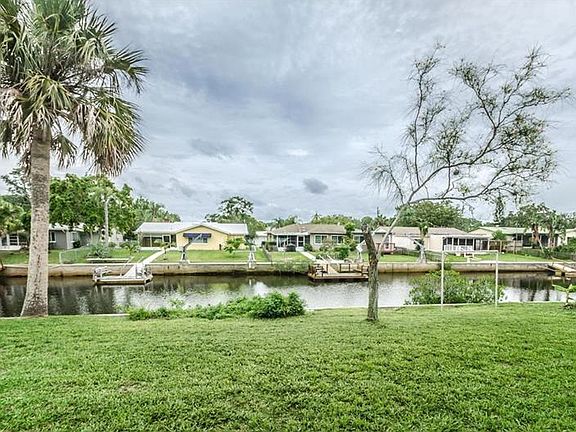 Lovely remodeled Port Richey home on a canal that leads to Boggy Bay! This home has been hit with a fresh coat of paint in and out, and gorgeous dark laminate lines the floors of the living areas and kitchen. The renovated kitchen offers new stainless appliances, shaker cabinets, recessed lighting, granite tops, subway tile backsplash, and opens to the living room, an ideal setup for entertaining! Gather around the large stone fireplace in the living room, complete with a hearth you can sit on to bask in the warmth! The master is a sumptuous retreat, with a huge walk-in closet and en-suite updated bathroom. All bedrooms feature plush carpet for comfort, and both bathrooms have been upgraded with new vanities and granite counters. Go out back and gaze out at the canal from the screened covered lanai, or enjoy it up close from your personal floating dock! Close to shopping and restaurants along US-19 and Gulf View Square Mall! Come see this great waterfront property today!