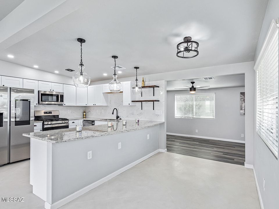 WELCOME HOME! This impeccably remodeled 3 bedroom, 2 bath home is truly MOVE-IN READY! Entering your new home, you are warmly greeted by a bright and open floor plan where you will enjoy amazing entertainment spaces including spacious living and family rooms and a stunning kitchen that boasts meticulous attention to detail. The kitchen includes a magnificent center island, granite counters, customized backsplash, freshly finished cabinets and stainless steel appliances. Seamlessly connecting the kitchen to the living room the 36x36 inch concrete floors lead you to French doors that open to a private, low maintenance, pool-sized backyard that provides plentiful space for endless opportunities. This home is the epitome of comfort and style! DON'T MISS OUT on this AMAZING opportunity.