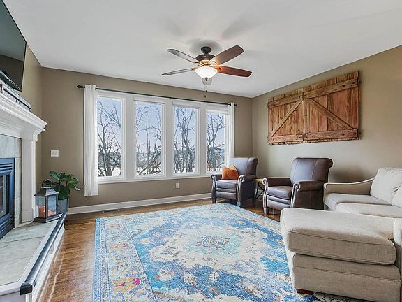 Amazing house with HUGE backyard in award winning DeSoto School District. True 2 story in Timber Trails Subdivision. This home features 5 bedrooms 4.5 baths with a fully finished basement. Large Master Suite with large walk-in Closet. Large fenced in flat backyard that faces green space. Main level features hardwood floors throughout, an eat in kitchen which features stainless steel appliances, granite countertops, island and walk in pantry. Laundry room around the corner featuring built in storage and access to the 3 car garage. Beautiful fireplace that is see through from the hearth room and living room. Walkout basement is finished with 5th bedroom, a full bath and wet bar. Walk out to your concrete patio to view your beautiful large yard. Lots of updates in this one, new composite decking and metal railing in May of 2021, new windows in 2022 with a transferable warranty, new hardwoods in living room and formal dining room, newer HVAC and roof, new outdoor shed in 2020.