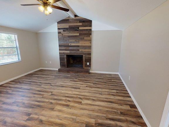 WHAT A STEAL!! Nicely remodeled contemporary fenced home with no HOA. This split open floor plan invites you into 1764 square feet of living space. As you enter the front door you embrace the living room with new laminate flooring throughout. Adjacent is the newly carpeted bonus/den/office or 4th bedroom. The remodeled kitchen has new cabinets, counter top and new stainless appliances (refrigerator and range on order) This home sits on 7700 square feet of level land. Just past the kitchen is the great room with a vaulted ceiling and decorative real wood burning fireplace for ambiance or to cozy up to on those cooler nights. Master and guest bath have been updated as well. The property is fenced front, sides and rear perfect for the little ones or to let the pets roam free. All three bedrooms have new carpeting and paint. Roof 2007, Water heater 2016, A/C 2014. Outside is an extra covered shed or workroom. Lots of space for all your recreation activities. Close to moon lake park, shopping and other amenities. A LOT OF BANG FOR THE BUCK IN YOUR NEW MOVE IN READY HOME.