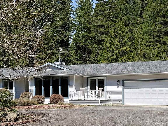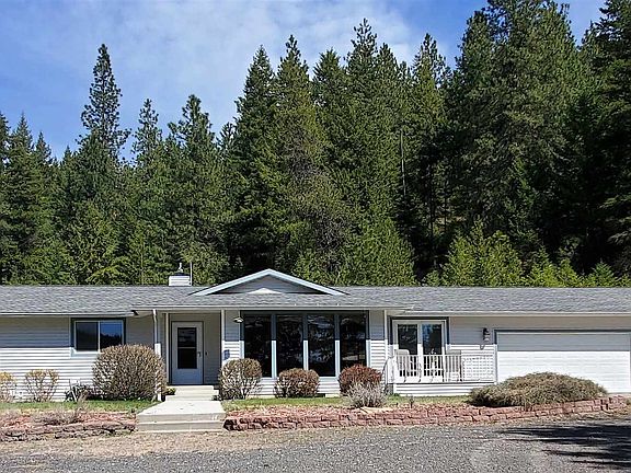 Enjoy wonderful views of the valley and Antoine Peak from the large windows in the dining and living rooms of this spacious ranch-style home. You will also enjoy relaxing in the hot tub on the secluded patio or wandering down the path beside the creek to a hidden oasis. This home has a main level master with a large walk-in shower. There is an office on the main level that can easily be returned to a bedroom. Downstairs has 2 non-conforming bedrooms, a library, and a bonus room. You will also find a craft room and a HUGE laundry room. The 3rd bay in the garage is a pull-through with roll-up doors on both ends. The garage is wired for 220. Located only 20 minutes from downtown Spokane, yet you will feel a million miles away!