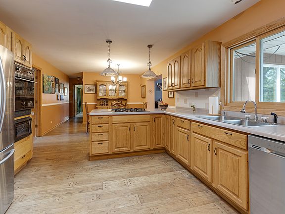 ALL BRICK RANCH SETTING BACK FROM ROAD ON TWO AND A HALF ACRES ~ CIRCULAR DRIVE OFFERING TWO ACCESSES TO FRONT DOOR, ONE BEING A CEMENT RAMP ~ NATURAL PRAIRIE PLANTINGS EVERYWHERE ~ QUAINT FOYER WITH POCKET DOOR TO ROOMY COAT CLOSET GREETS GUESTS ~ BEYOND IS THE SPACIOUS LIVING ROOM ENHANCED WITH A BAY WINDOW AND GAS LOG FIREPLACE WITH OAK MANTLE AND SLATE HEARTH ~ THROUGH BEVELED GLASS FRENCH DOORS IS THE LARGE KITCHEN WITH WOOD FLOORING WHICH PROVIDES AMPLE EATING AREA PLUS BREAKFAST BAR ~ STAINLESS STEEL FRIG AND DISHWASHER, BUILT IN OVEN AND MICROWAVE, COUNTERTOP GAS STOVE ~ NATURAL LIGHTING PROVIDED BY A SKYLIGHT ~ AND OPEN TO THE FABULOUS FAMILY ROOM ADDITION WITH VAULTED WOOD CEILING AND WOODBURNER STOVE, WINDOWS GALORE TO BRING IN THE VIEWS ~ TWO MASTER BEDROOMS, EACH WITH FULL BATHS AND HAVING DUAL ACCESS FOR GUESTS ~ MIDDLE BEDROOM WITH WOOD FLOORS AND LAUNDRY CLOSET ~ BOTH THE LARGER MASTER BEDROOM AND THE FAMILY ROOM CAN EXIT THROUGH SLIDERS ONTO THE 28' X 16' WOOD DECK WITH GAS GRILL HOOK UP ~ AND A PAVER BRICK PATIO LEADS ONE TO THE 15' X 12' SCREENED PORCH ~ THE LUSH BACK YARD IS IMPROVED WITH A 24' X 20' CEMENT FLOORED SHED AND A GAZEBO ~ EVERYTHING YOU EVER WANTED FOR COUNTRY LIVING IS HERE, AND HORSES ARE ALLOWED, TOO ~ EASY ACCESS TO EITHER RT. 20 0R RT. 23 INTERCHANGE WITH I90.