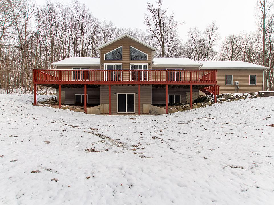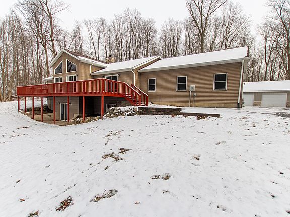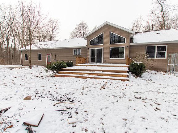 Welcome home! This home was custom built and features 5 Beds & 3 full bathrooms and is secluded in the woods on 5+ acres. It's nestled just off M-43 between GR and Kzoo! This property also has shared access on the beautiful all sports Wall Lake. You will love the paved driveway, 2 stall attached garage & a detached barn for all of your toys & hobbies. Inside the home you'll be amazed at the cathedral ceilings and large stone hearth fireplace between the dining room & living room, newly refinished hardwood floors, and new appliances in the kitchen! This home also has a large front porch for all of your summertime entertaining and a great patio out back. Both of which were just refinished! Downstairs you will find a fully finished basement with a walk out!