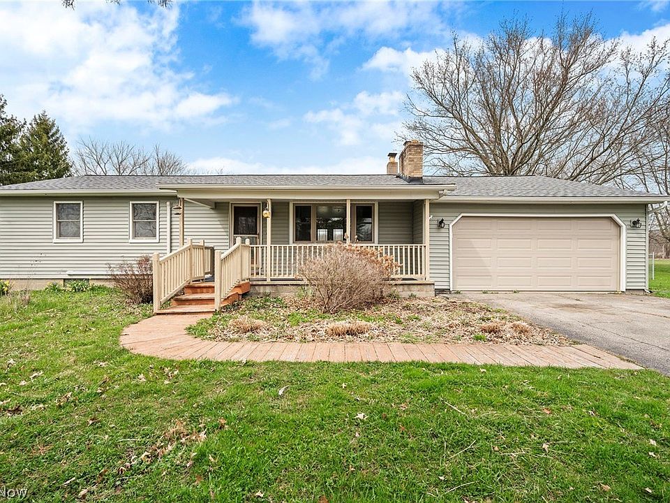 Great opportunity for a spacious, updated ranch on 5.63 acres in Medina! This charming home features over 1900 square feet of living space with 3 bedrooms, 1.5 bathrooms, spacious open-plan living areas, an entertainer's back yard, and more! A welcoming front porch opens into a spacious living room with a vaulted ceiling, a brick fireplace, and updated laminate flooring that flows into the dining room. The dining room features double doors to the back deck as well as access to the enclosed back porch. The adjacent kitchen includes a full complement of stainless steel and plenty of cabinet space. Down the hallway are three bedrooms, all with updated flooring and plenty of closet space. The primary bedroom features an ensuite half bath with hallway access. A full bathroom completes the main floor. The full lower level features a finished rec room, a finished bonus, and a laundry / utility room with plenty of storage. Outside, there is a fully fenced-in back yard with a expansive deck and an aboveground pool. Beyond the back yard, there is an archery range and trails! Located just down the street from Chatham town center and not far from Medina town center. Don't miss this one!