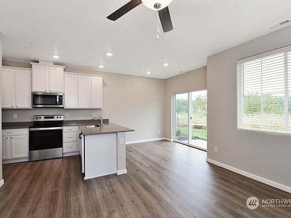 Now available in Arlington - the Alki floor plan! This stunning, brand new townhome features an open entertaining area throughout the living room & dining area. The kitchen is upgraded with quartz counters, 42” cabinets, & a full set of stainless steel Whirlpool® appliances. Luxury plank flooring, two-tone paint & recessed LED lighting create a beautiful design. Upstairs, enjoy a private owner’s retreat with a dual-sink vanity & walk-in closet, plus two more bedrooms & a second full bathroom. A finished garage offers storage space & privacy. If you are working with a licensed broker, please complete the Prospect Registration Agreement (*Site Registration Policy #4898) & submit prior to your first visit to the Gilman Walk Information Center.