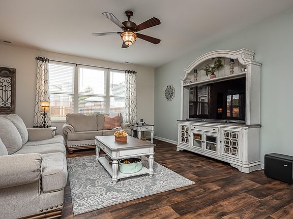 Simply gorgeous custom-built home on quiet cul-de-sac with open green space and creek access. This 2725 sq ft stunning home features 3 large bedrooms and 2 and a half baths with upgrades galore! The beautiful entry with its stately staircase opens to an elegant dining room with panel molding and designer palette. Open Concept and light-filled kitchen, living room, and breakfast cafe area are huge and feature luxury vinyl flooring, recessed lighting, kitchen island with granite deep well sink surrounded by an abundance of custom cabinetry, stainless top-of-the-line appliances and dual pantries. Step off into your breezy sun room, perfect for morning coffee and a good book or spend relaxing nights on your expanded patio in your fully fenced large backyard with covered grilling area. The More