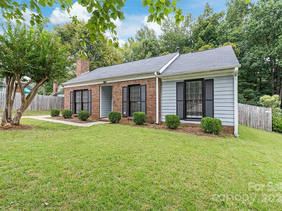 Discover this beautifully renovated, move-in ready ranch home located just minutes from Uptown Charlotte, South Park, and Mint Hill! Almost every inch of this home has been updated, including fresh paint, remodeled bathrooms, a refreshed kitchen, and more. As you step inside, you'll be welcomed by a bright and open floor plan, neutral finishes, and a stunning white-washed wood-burning fireplace. The kitchen features granite countertops, subway tile backsplash, a breakfast bar, and a custom wood-planked accent wall. The spacious primary suite includes a farmhouse sliding door and a tastefully renovated ensuite bathroom, while the generously sized secondary bedrooms offer plenty of comfort. Step outside to the large, private, fully fenced backyard—perfect for relaxing evenings. The HVAC was replaced in 2022. This charming home is ready for its new owners!