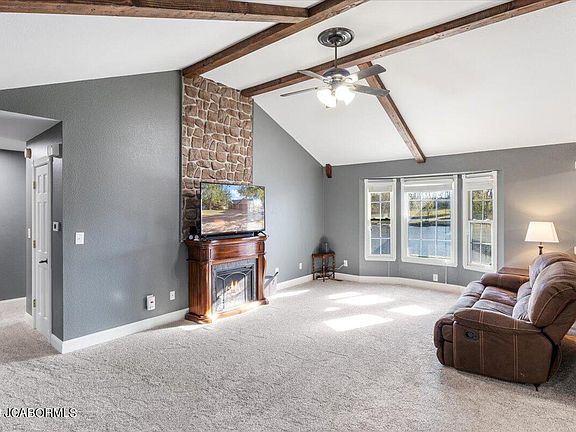 Lake front living at its finest! This beautiful 3 bed and 3 bath home with full walk-out basement is located on Lake Carmel. Updates include new HVAC, new carpet, new fixtures, and new lighting. Open concept with eat in kitchen! Primary bedroom has ensuite. This home is MOVE IN ready! The finished basement has stained concrete floors and ample space for entertaining or space to park a 3rd vehicle. Continue outside with outdoor entertaining on the patio or swim dock. Be prepared as you will not want to leave the amazing views from the covered back deck while watching the sunrise and sipping on your coffee! You do not want to miss out on this one! Also, 30amp service for camper hookup. Schedule your showing today!