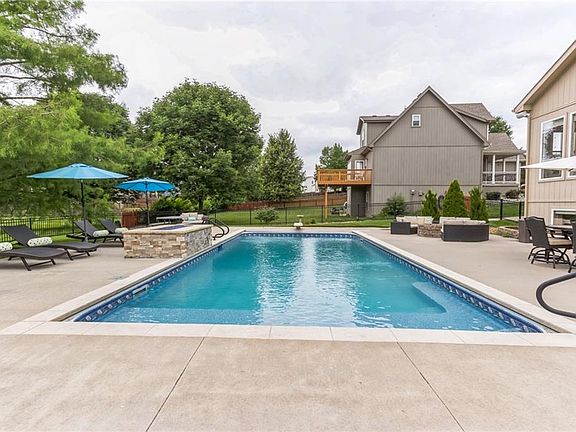 This home in the sought after Benson Place subdivision, not only has a very open floor plan that flows nicely, but also a beautiful pool and gas firepit in the backyard! The main floor includes a formal dining room, living room, breakfast room off the kitchen (which has new granite countertops, backsplash, and an undermount sink), half bath, and a LARGE walk-in pantry. On the second floor relax in the spa-like master bedroom/bathroom that has dual sinks, HUGE walk-in closet, and a free-standing bathtub. The laundry area is located upstairs with the four bedrooms. Finished basement with a bonus room, office with french doors, living area, and a half bath. Outside, enjoy the wrought-iron fenced backyard, sprinkler system, pool with automatic cover, waterfall with fire element, and a natural gas firepit. This three car garage home is A MUST SEE! This home is within the Liberty School District and feeds into Shoal Creek Elementary AND Liberty North High School. Great location with quick access to Interstates 435 and 35, shopping, and a variety of restaurants.