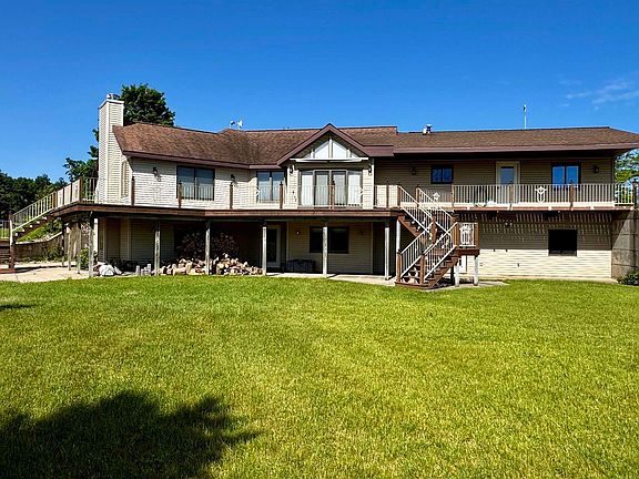 Large ranch style home with over 2000 sq ft on the main floor and full finished lower level for over 4300 finished sq ft. 4 bedroom, 4 baths, large primary suite, hardwood flooring, vaulted ceilings and rich cherry cabinets and trim. The lower level features a spacious gathering area plus a separate game room, craft room, storage room, bathroom, and another bedroom. There is a 48' x 60' pole building, and 63 acres of land with about 25 acres of it being tillable ground. Located in the McBain School District. Seller is related to listing agent.