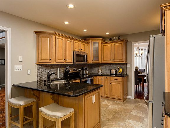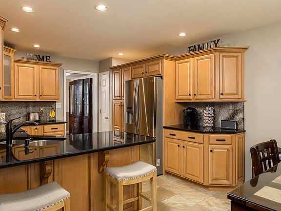 All Brick, 2 sty with finished walkout, backs up to wooded area. Updated throughout. Eat in kitchen with breakfast bar & area, granite counters, SS appl., new cab. in 2009, new floor 2018. A vaulted great rm with gas FP, access to a screened deck , Asian tigerwood hdwd & freshly painted w/light grey color. Dining room has hardwood fl, trey C and fresh new neutral paint. All new carpeting on the 2nd fl. and master bedroom. The Foyer is 2 sty with a cat walk landing overlooking the great rm also 3 nice bedrooms and full bth...One of the bedrooms is over the garage, extra large w/ WIC. The finished w/o LL has a fantastic media room w/ full service bar with ref. & wine cooler. LL has a large teen Ste with WIC & full bth., a large Exercise rm.. Over 1200 sft fin! There are 2 furn. & ac unit